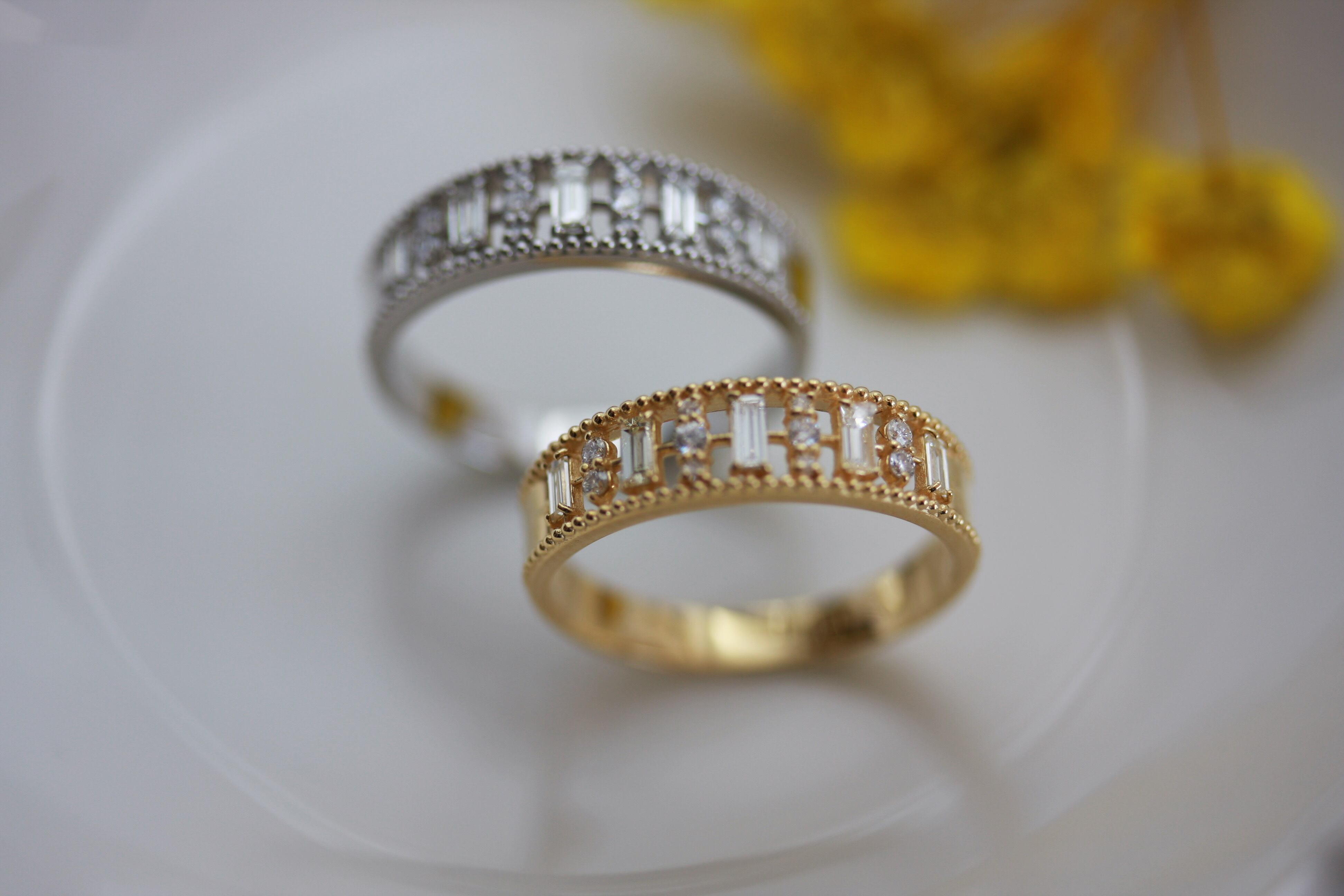 透かしがあるデザインなので、重たくなく普段使いにも適したリングとなっております。