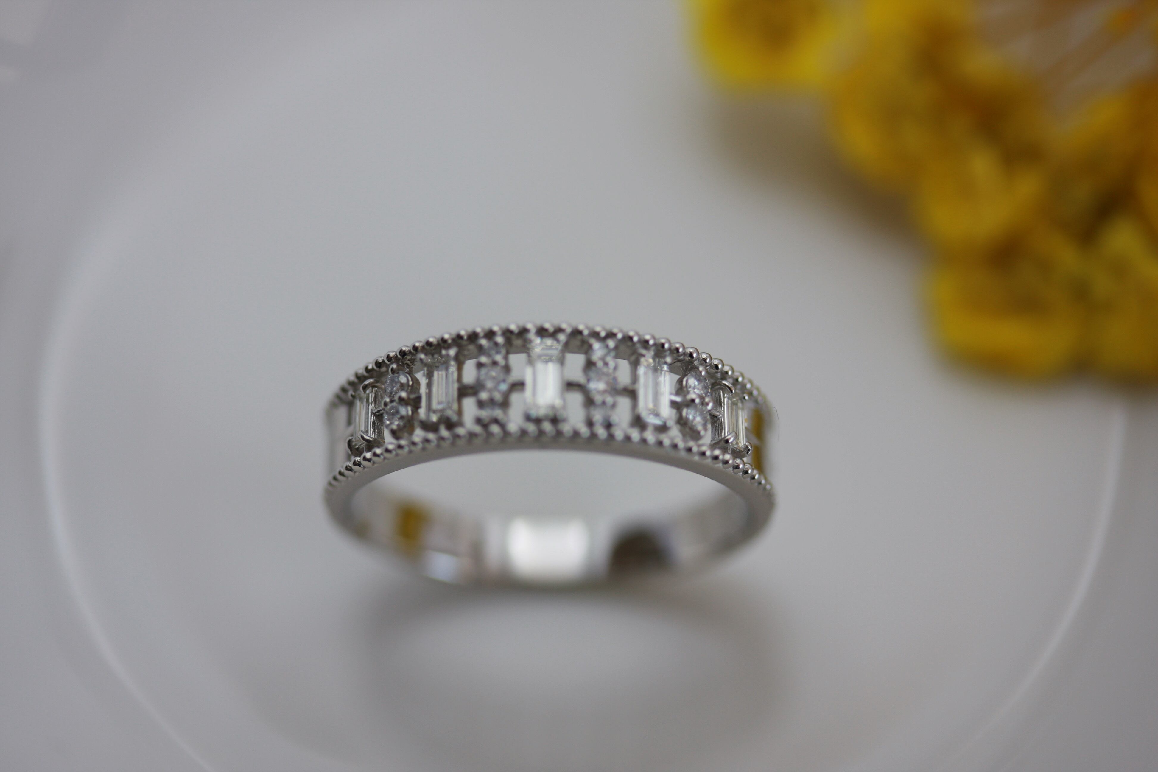 バケットダイヤとラウンドダイヤの二種類のダイヤモンドを使用し、独自の煌めきが美しい洗練されたデザインに仕上がりました。