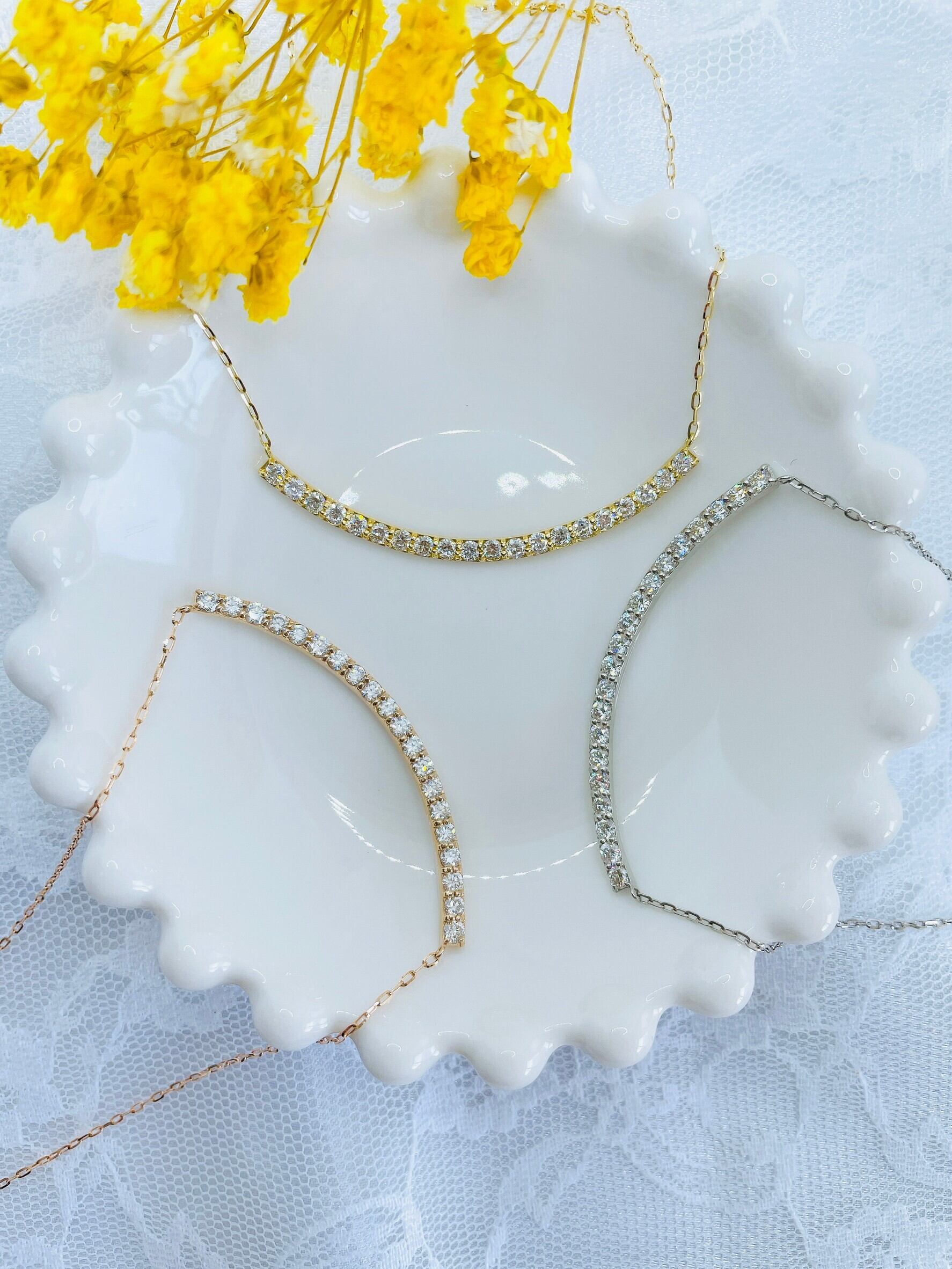 緩やかなカーブを描くラインがデコルテを綺麗に演出してくれます。