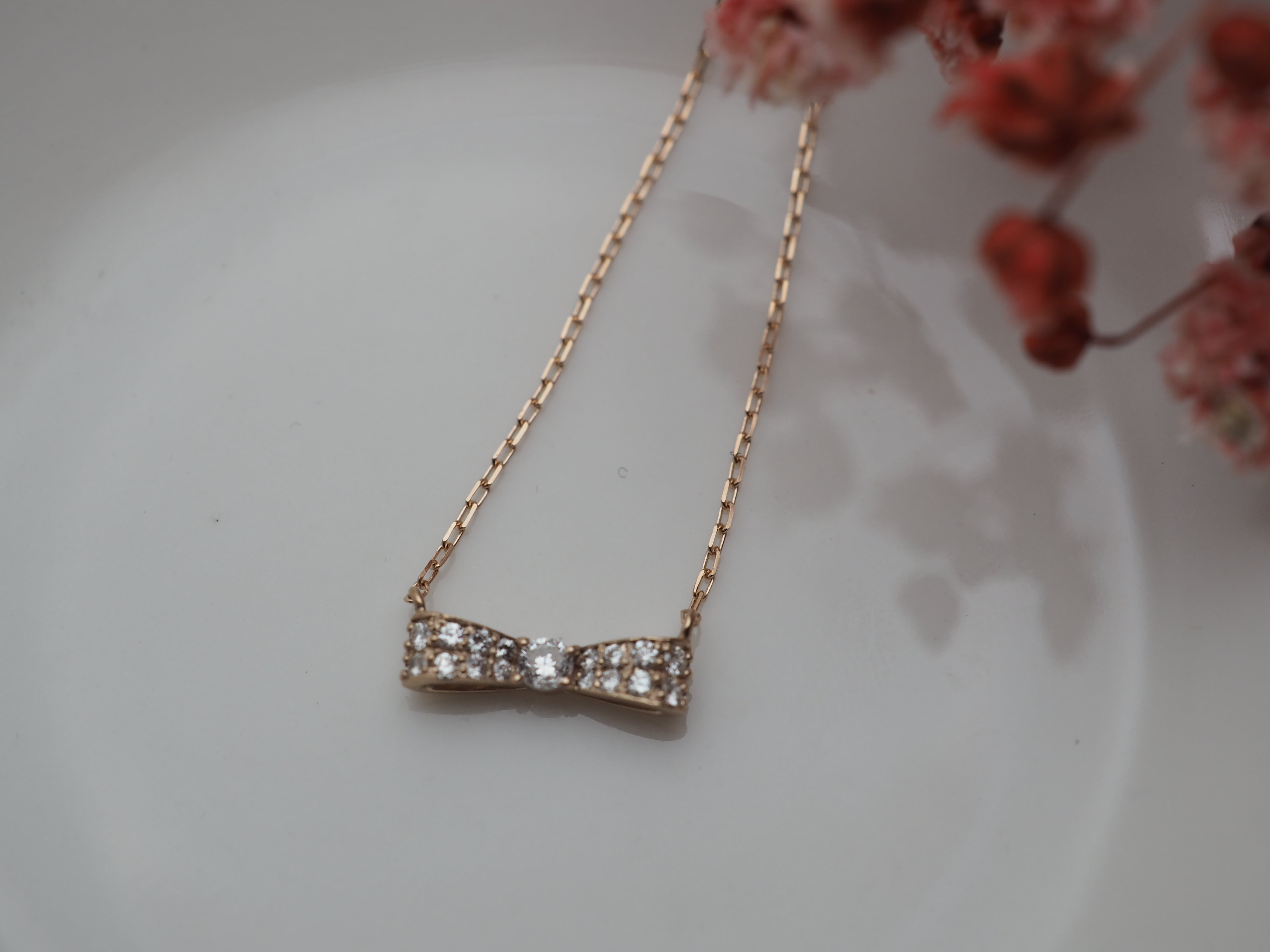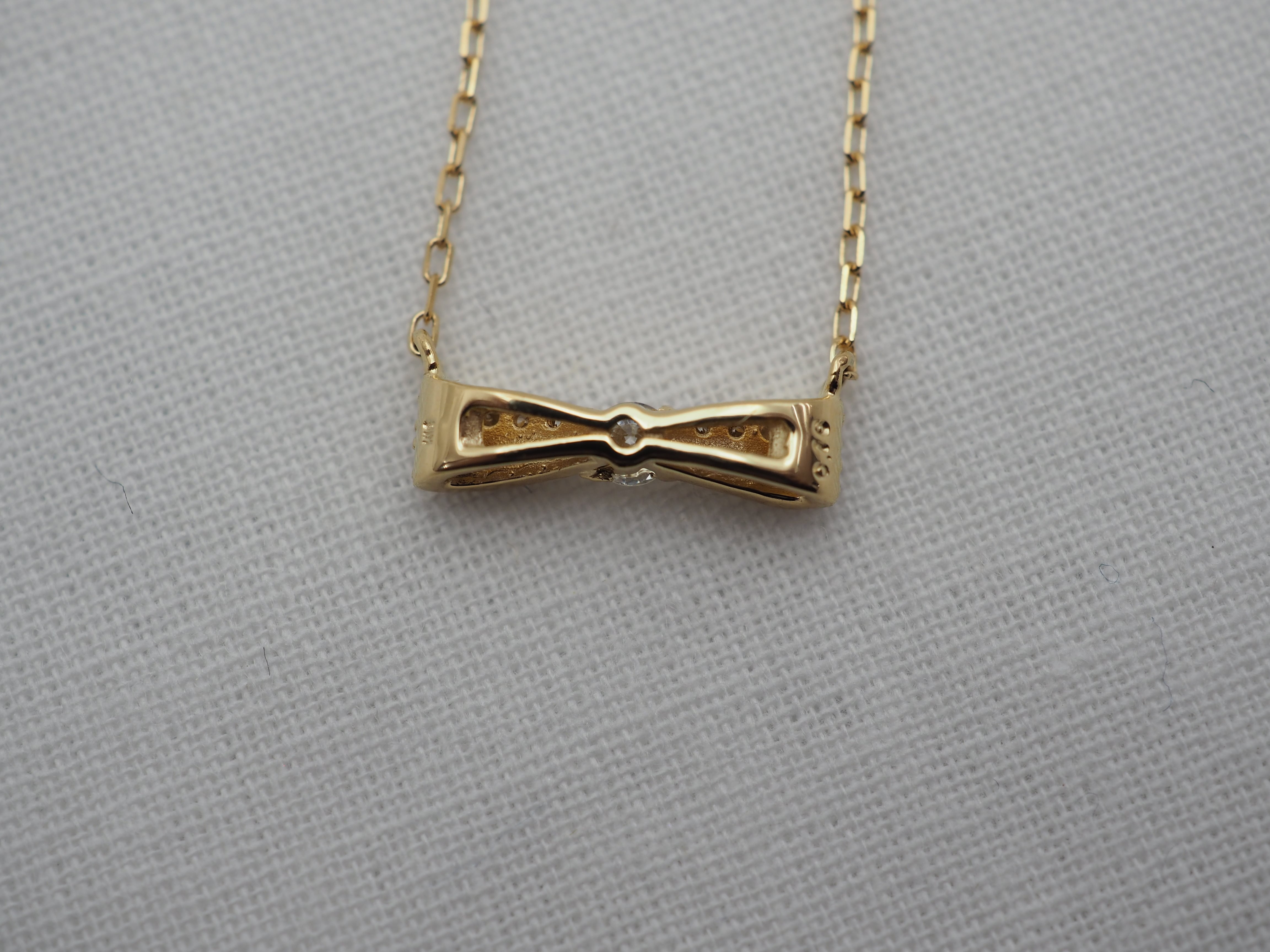 【商品番号:P2996–4】プラチナ900 K18 0.16カラット リボンモチーフ ダイヤモンド ネックレス