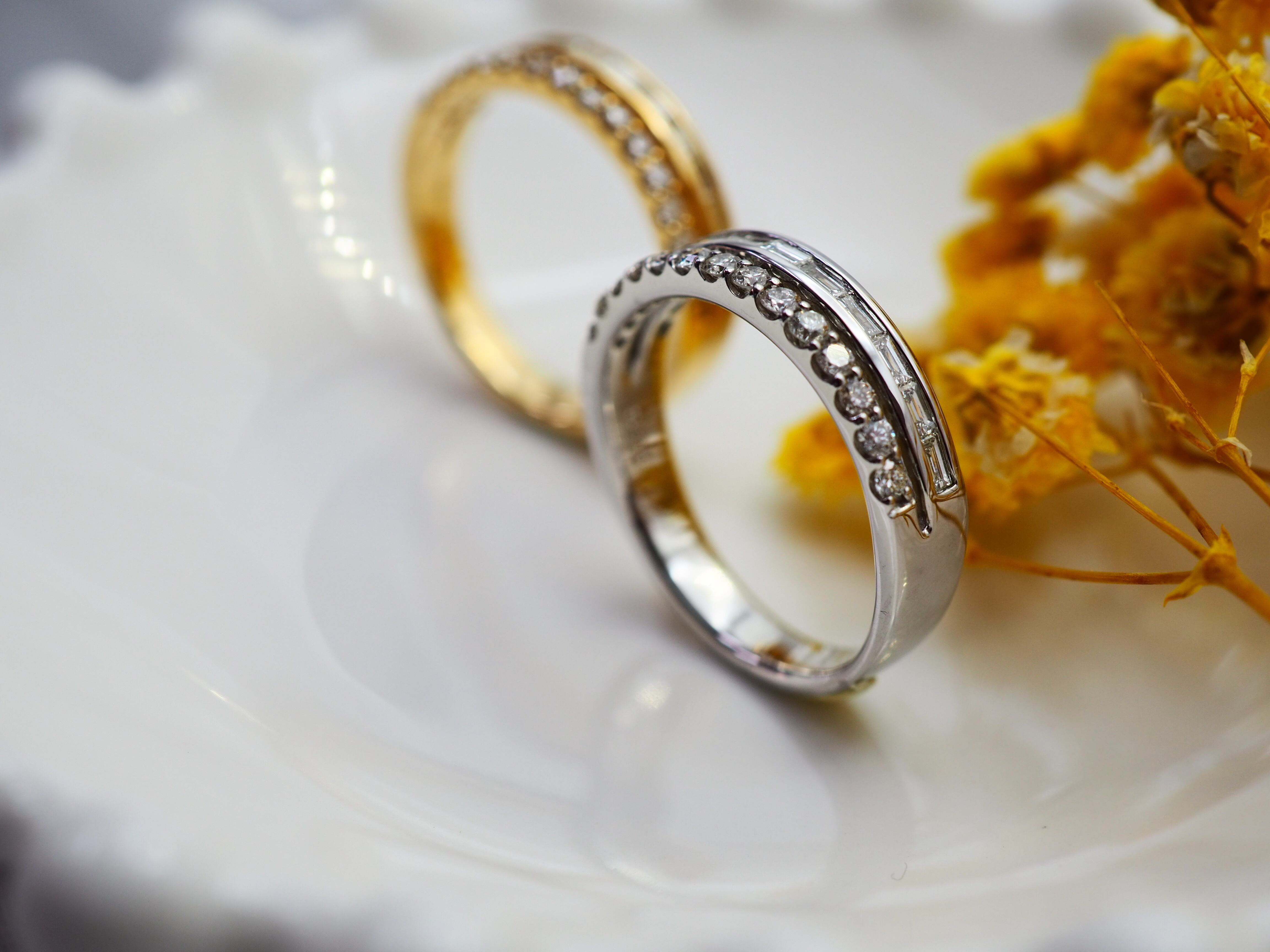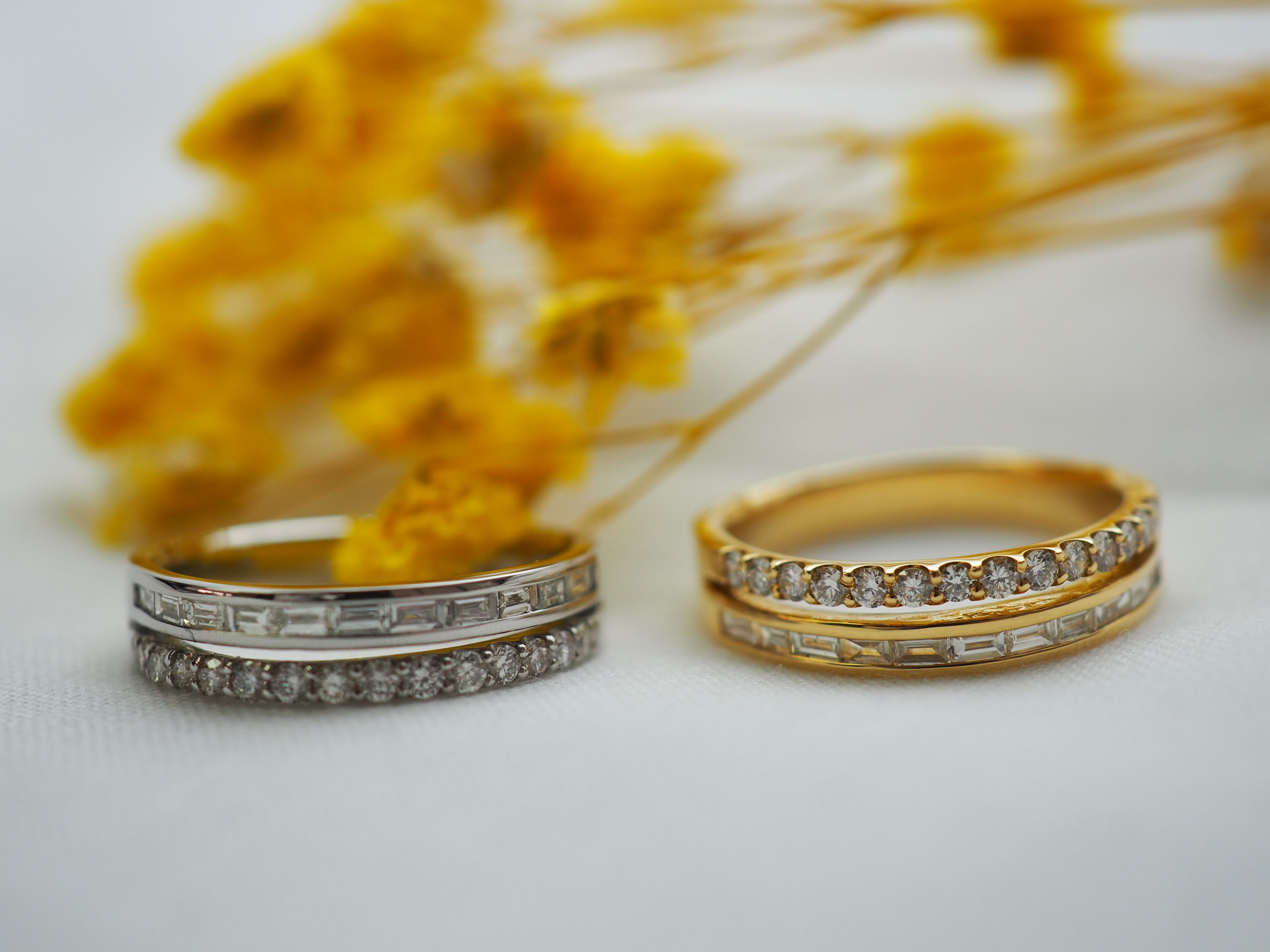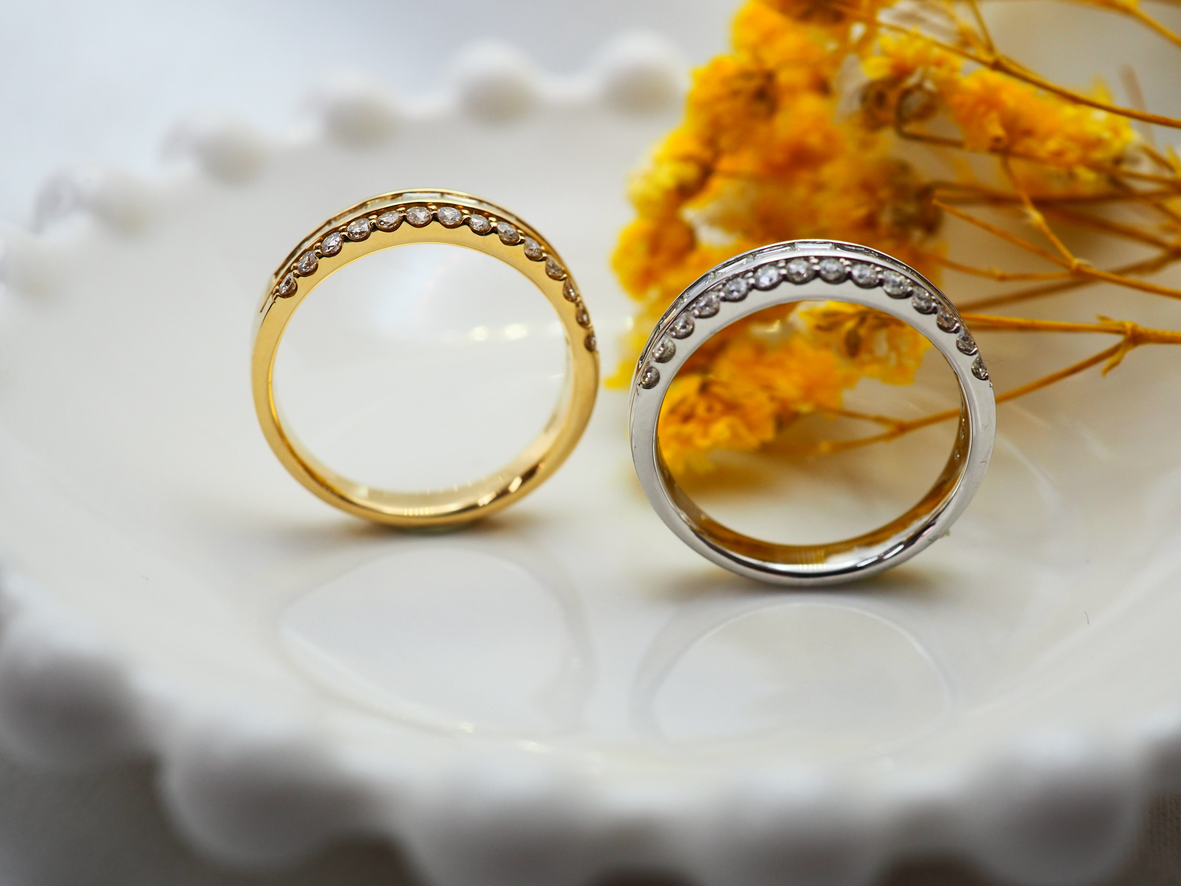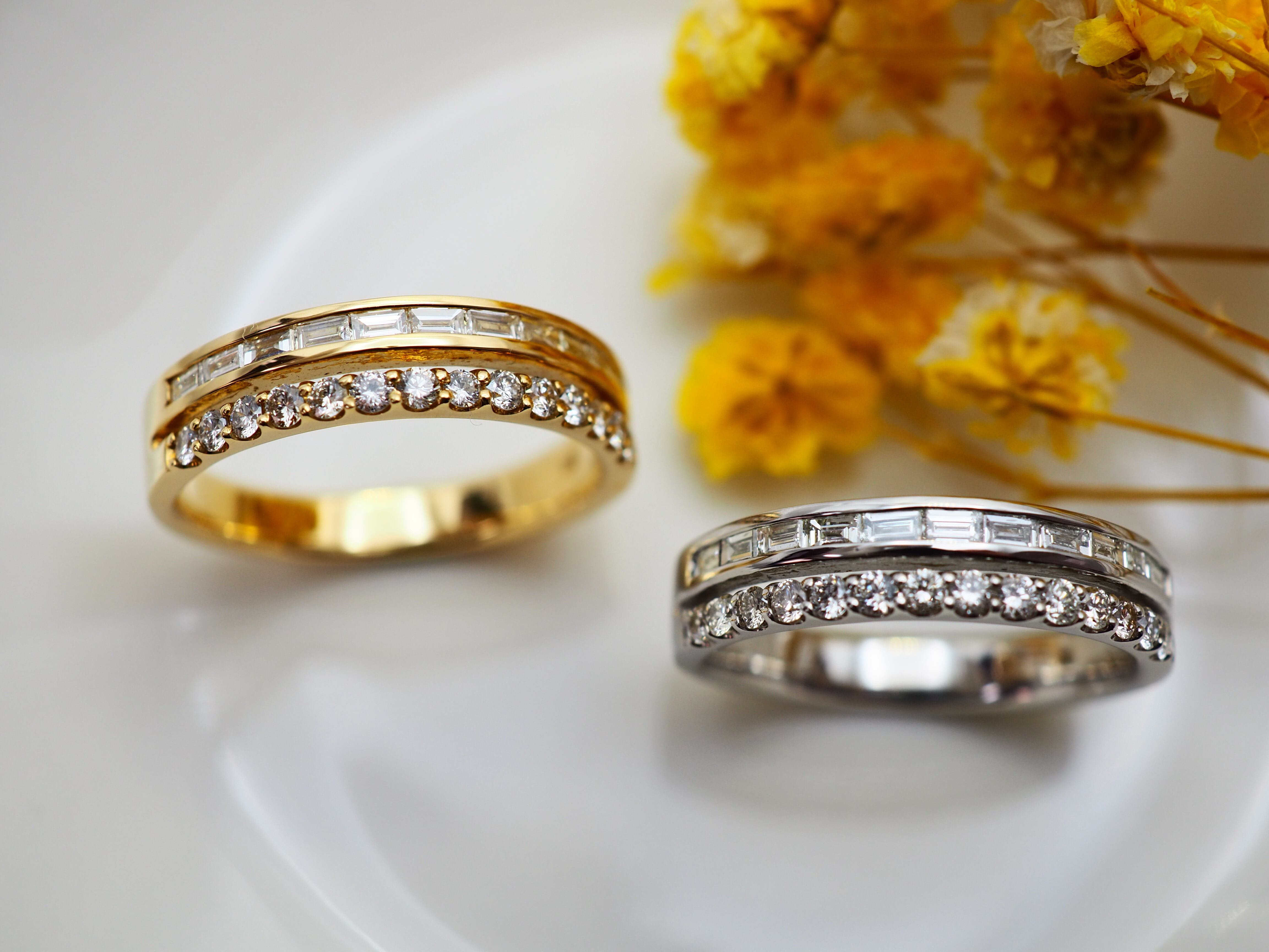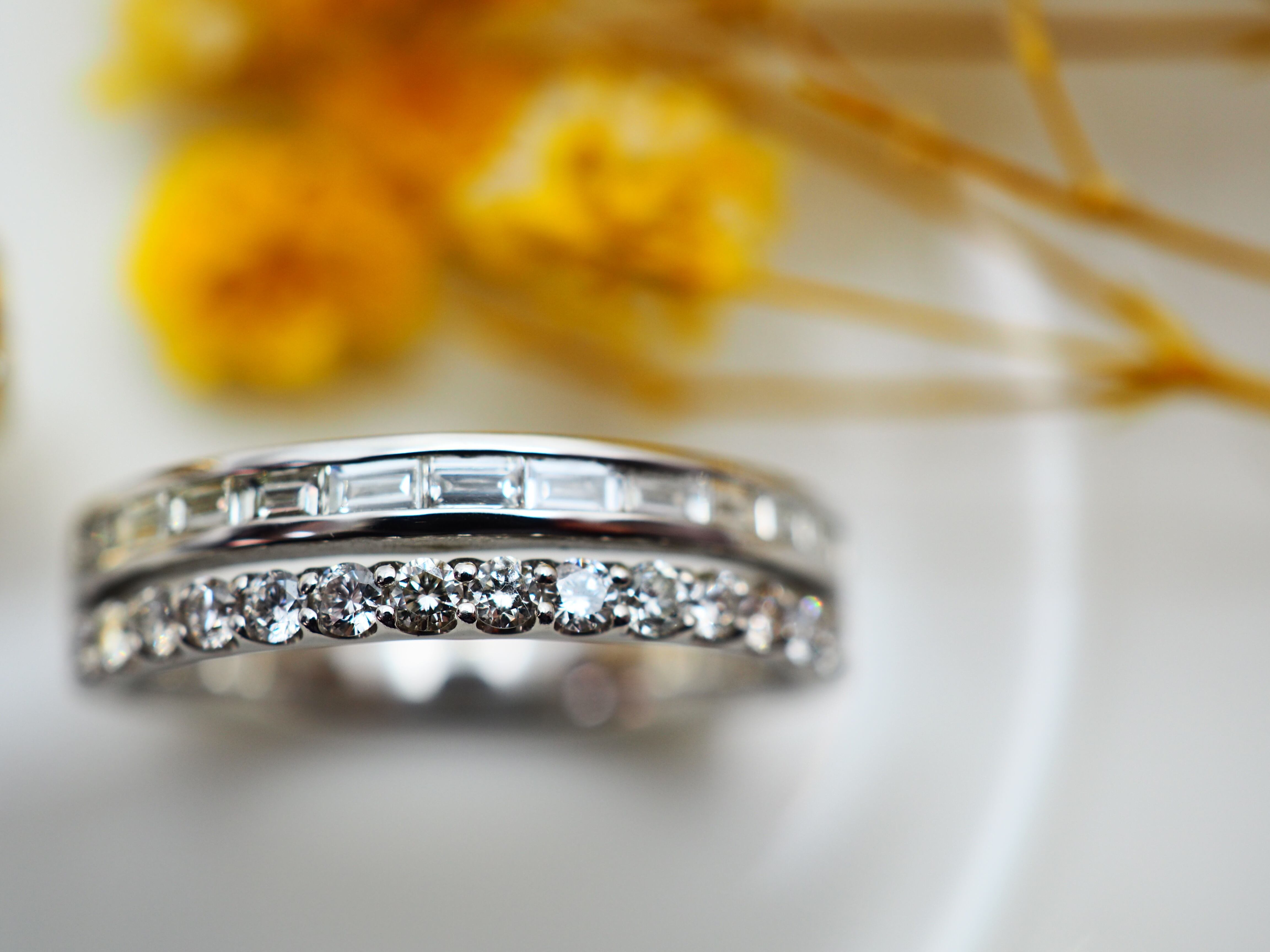シンプルなデザインですが、綺麗に並んだダイヤモンドが絶妙な存在感を放ちます。