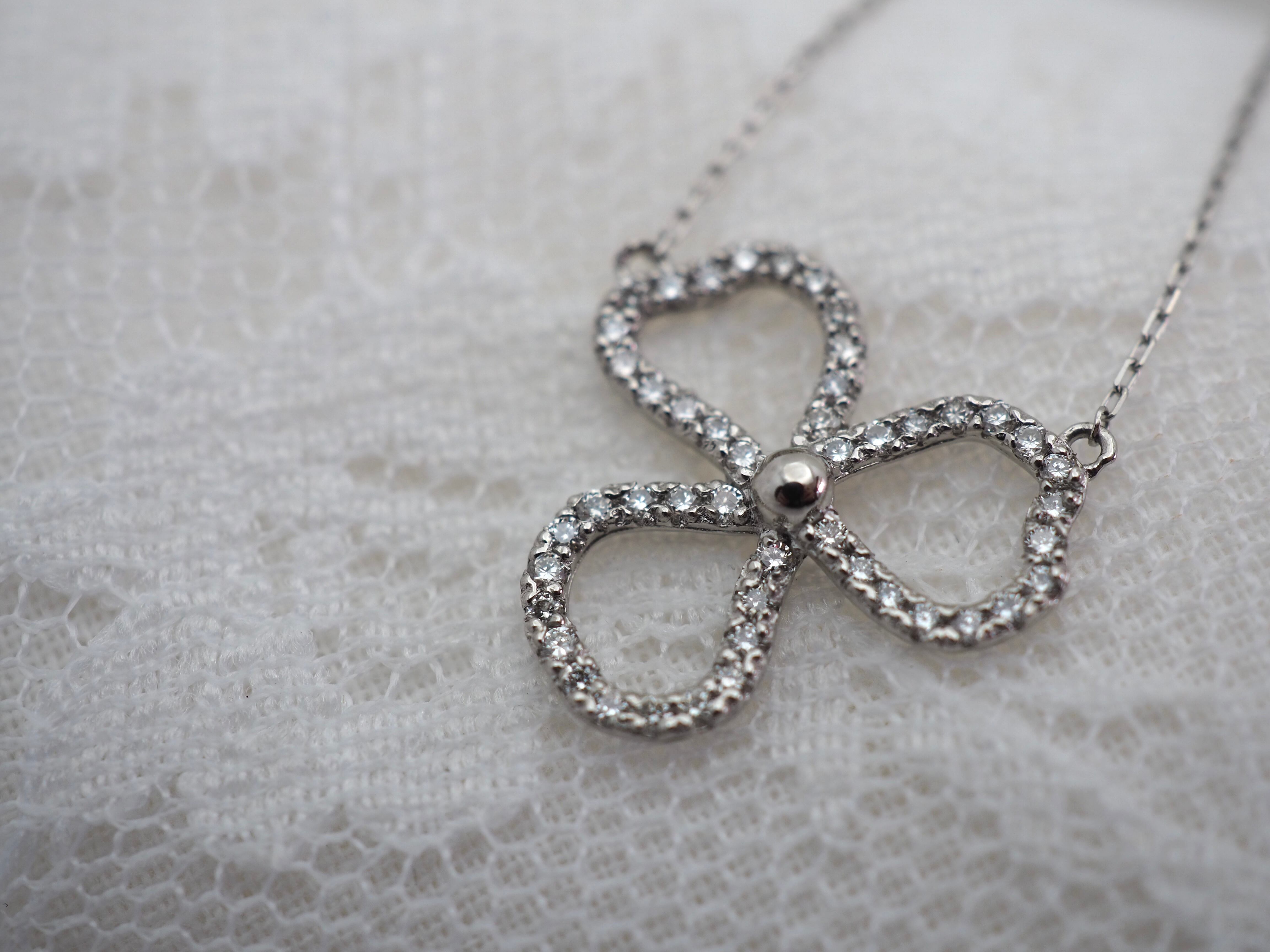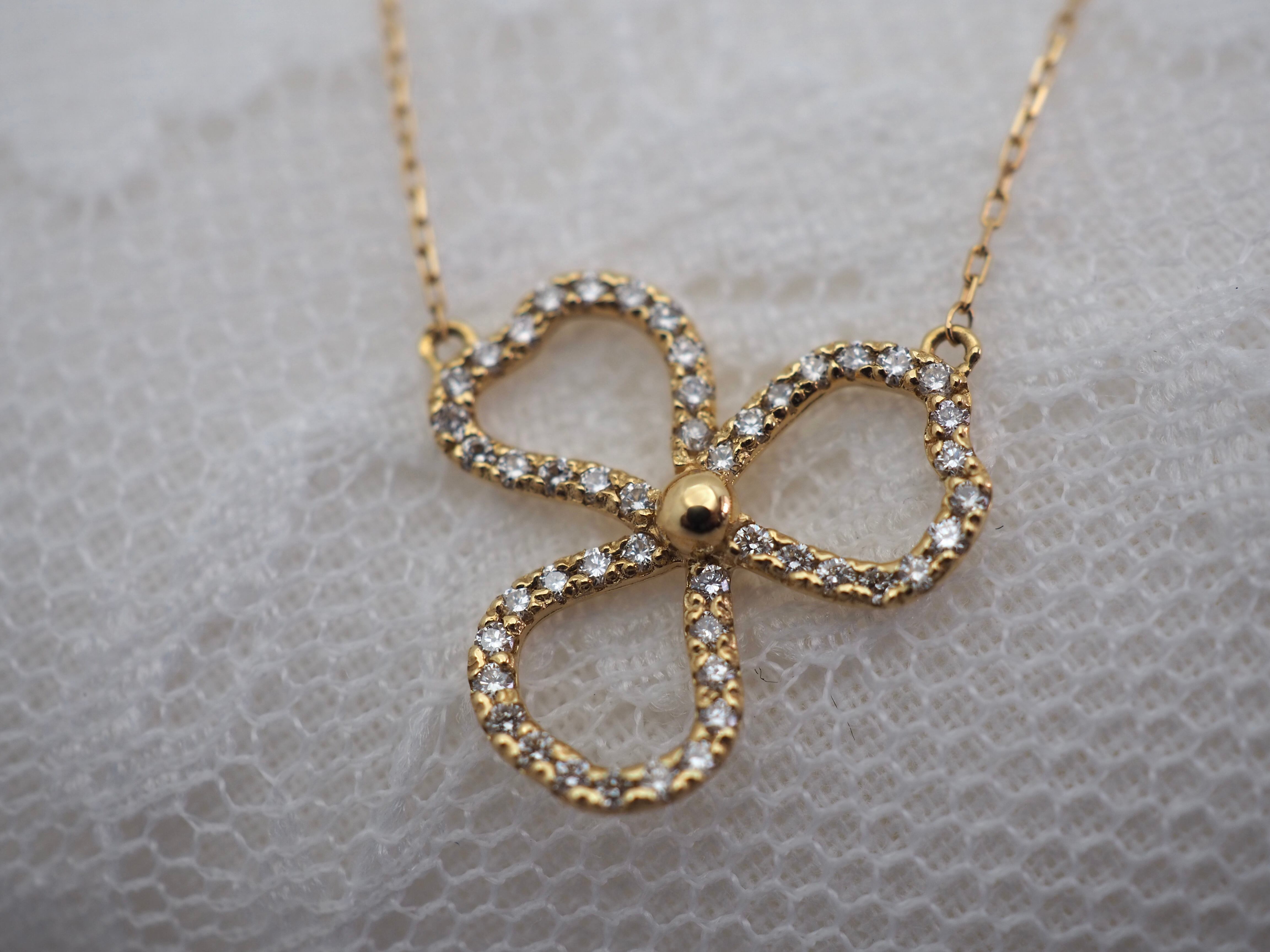 可愛いお花が胸元で揺れることで花びらラインに置かれたダイヤモンドがキラキラと光り、フェミニンな印象に仕上げてくれます。