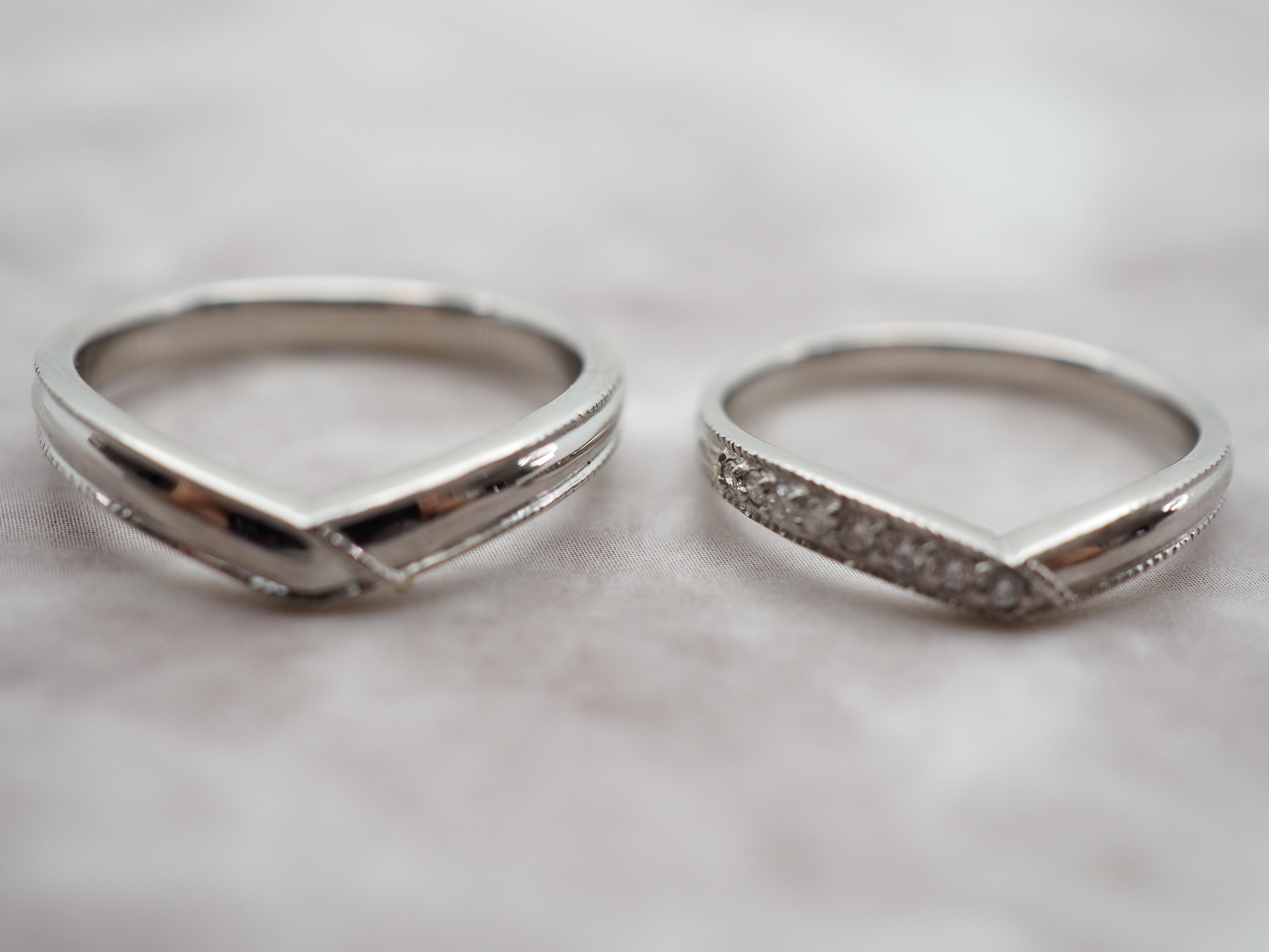 重ね合えるV字ラインのペアリング。