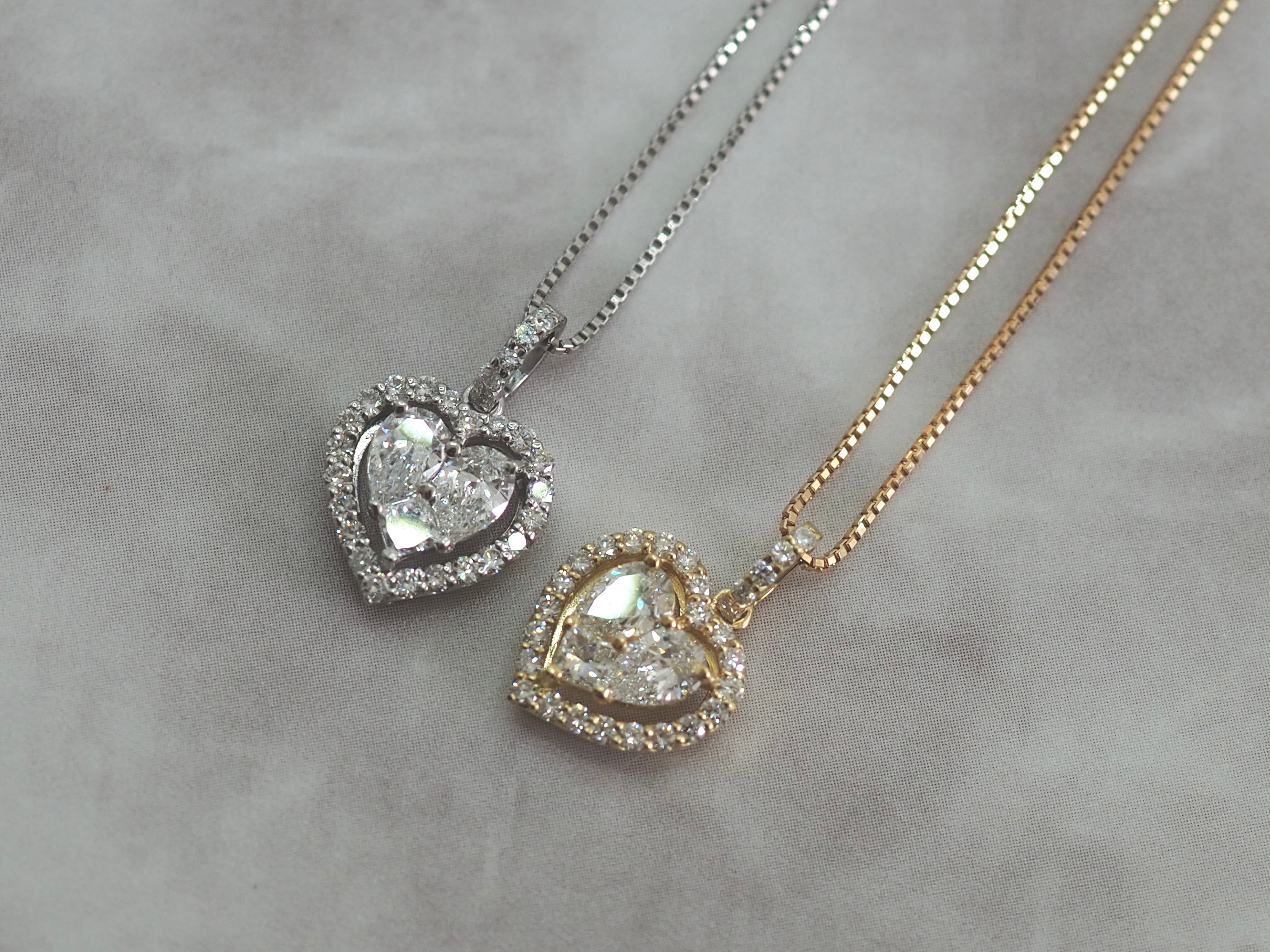 【商品番号:P2975ーv6】プラチナ900 K18 0.50カラット ハートモチーフ ペアシェイプ プリンセスカット 取り巻きネックレス ハートネックレス ダイヤモンド ネックレス