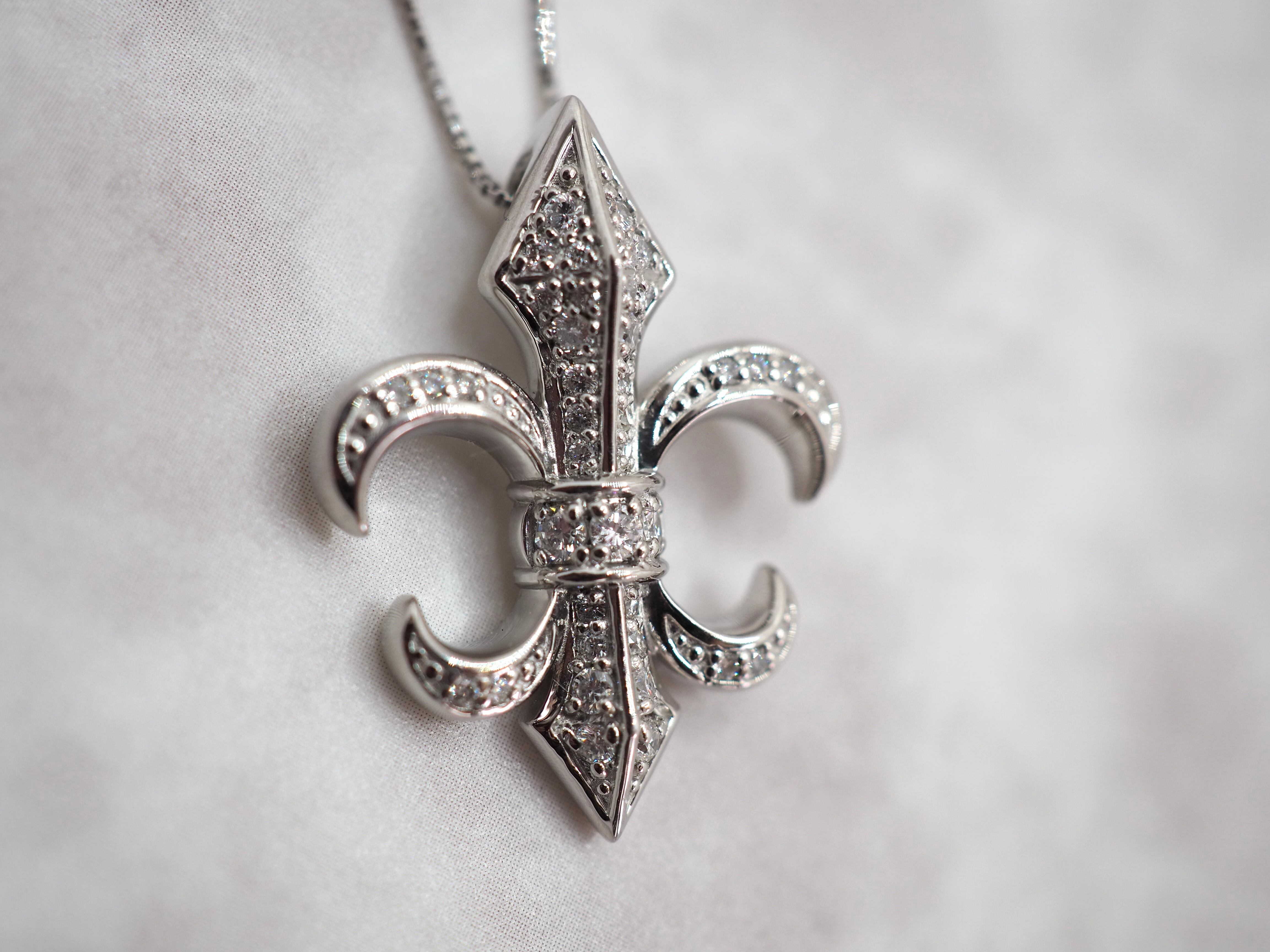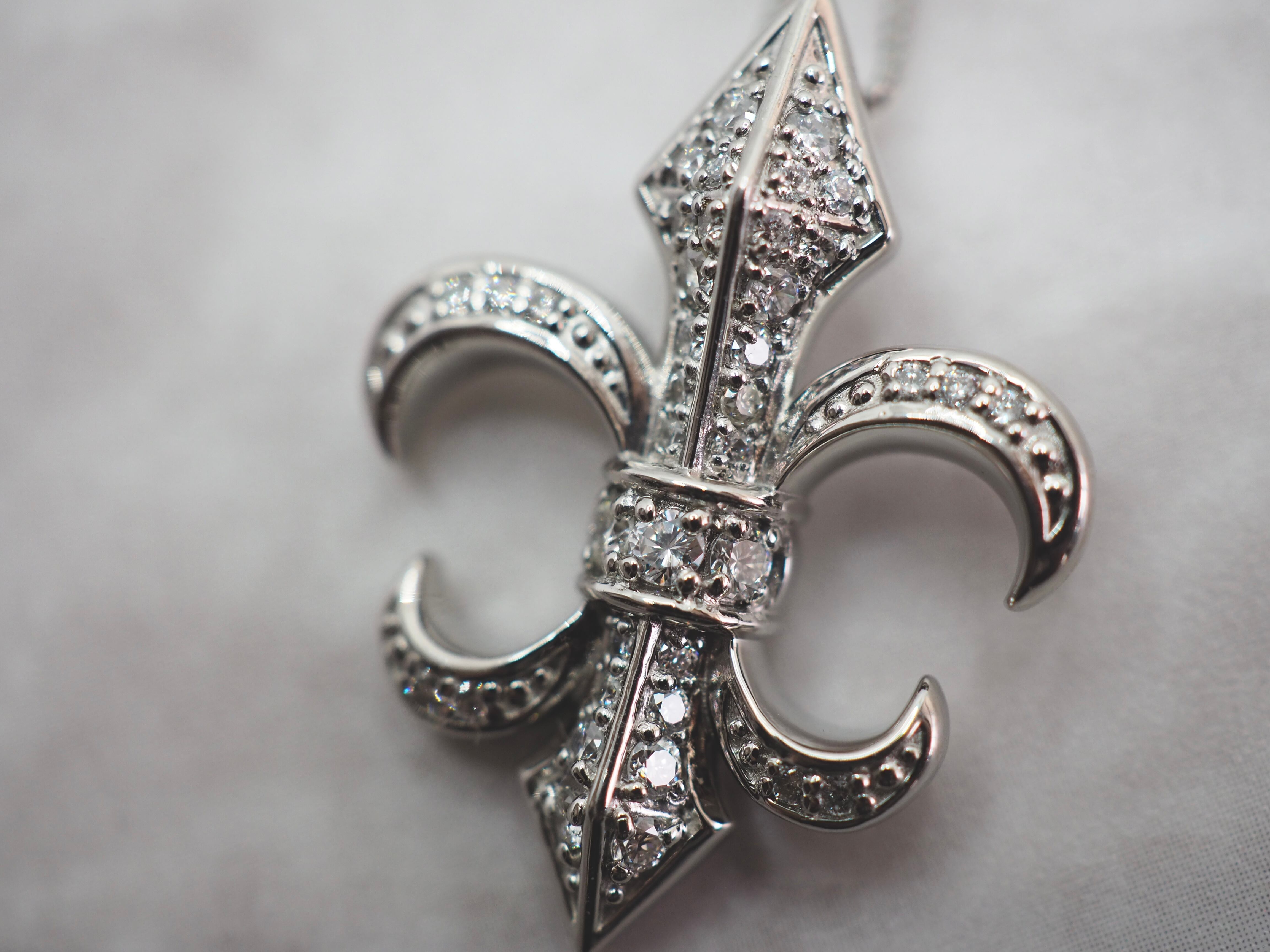 【商品番号:P2962ーv6】プラチナ900 0.25カラット メンズ メンズネックレス 百合の紋章 フレア フルールドリス ダイヤモンドダイヤモンド ネックレス