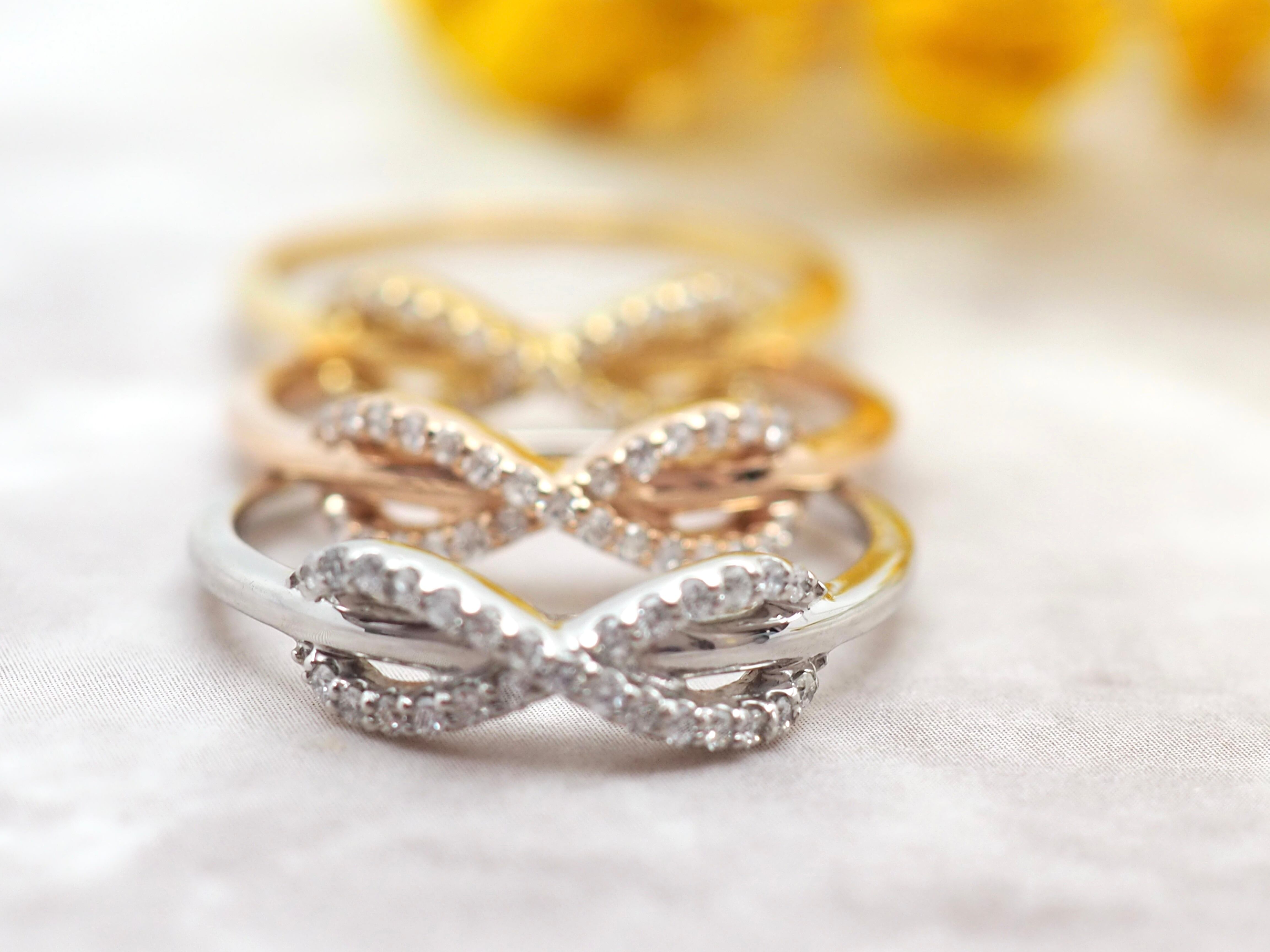 途切れることなく繋がり、永遠を意味するインフィニティ♾モチーフ部分には0.15カラット27ピースのSIクラスダイヤモンドをセットしました!