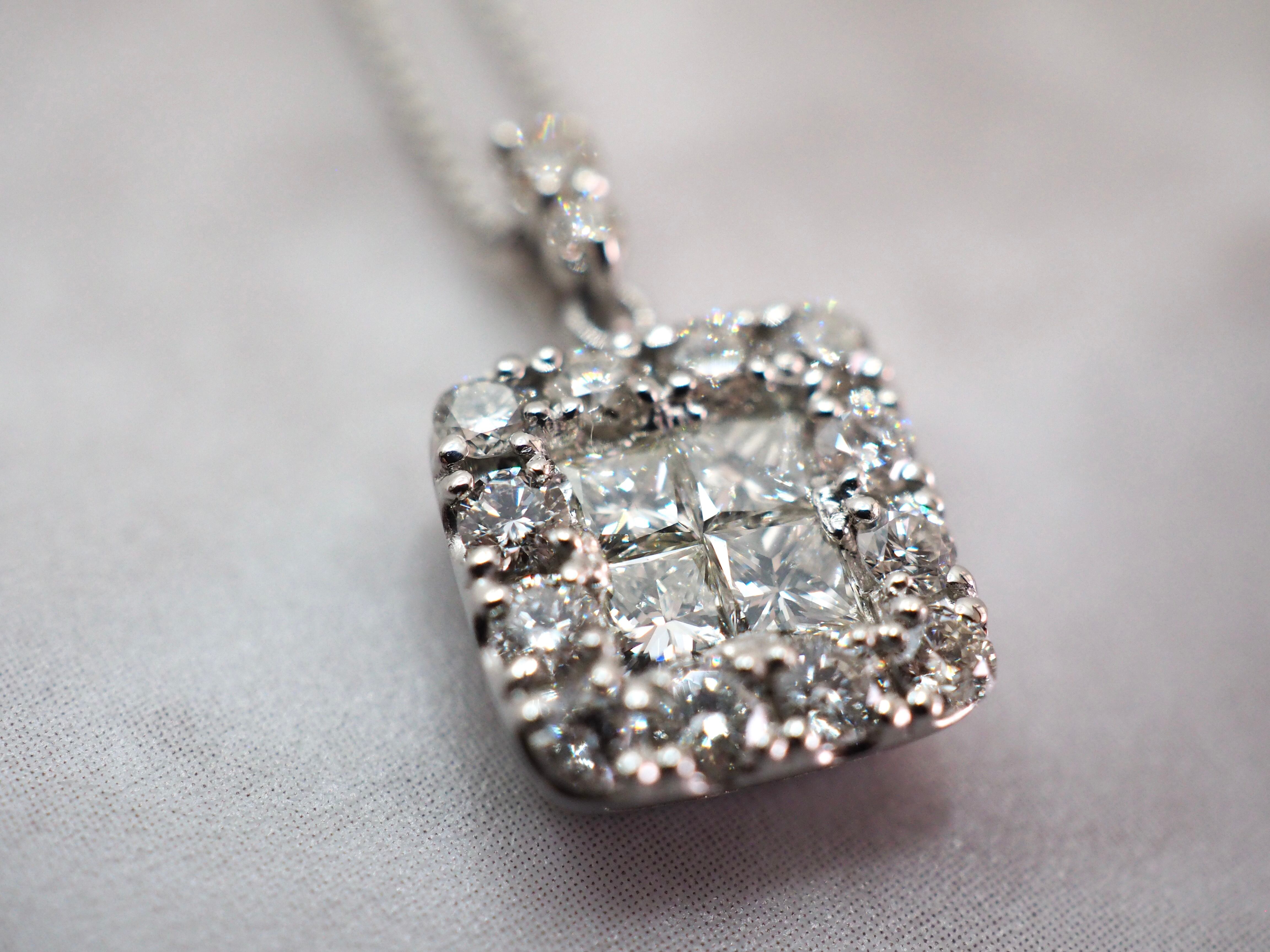 【商品番号:P3010-v6】プラチナ900 K18 0.50カラット スクエア スクエアネックレス プリンセスカット ダイヤモンド ネックレス